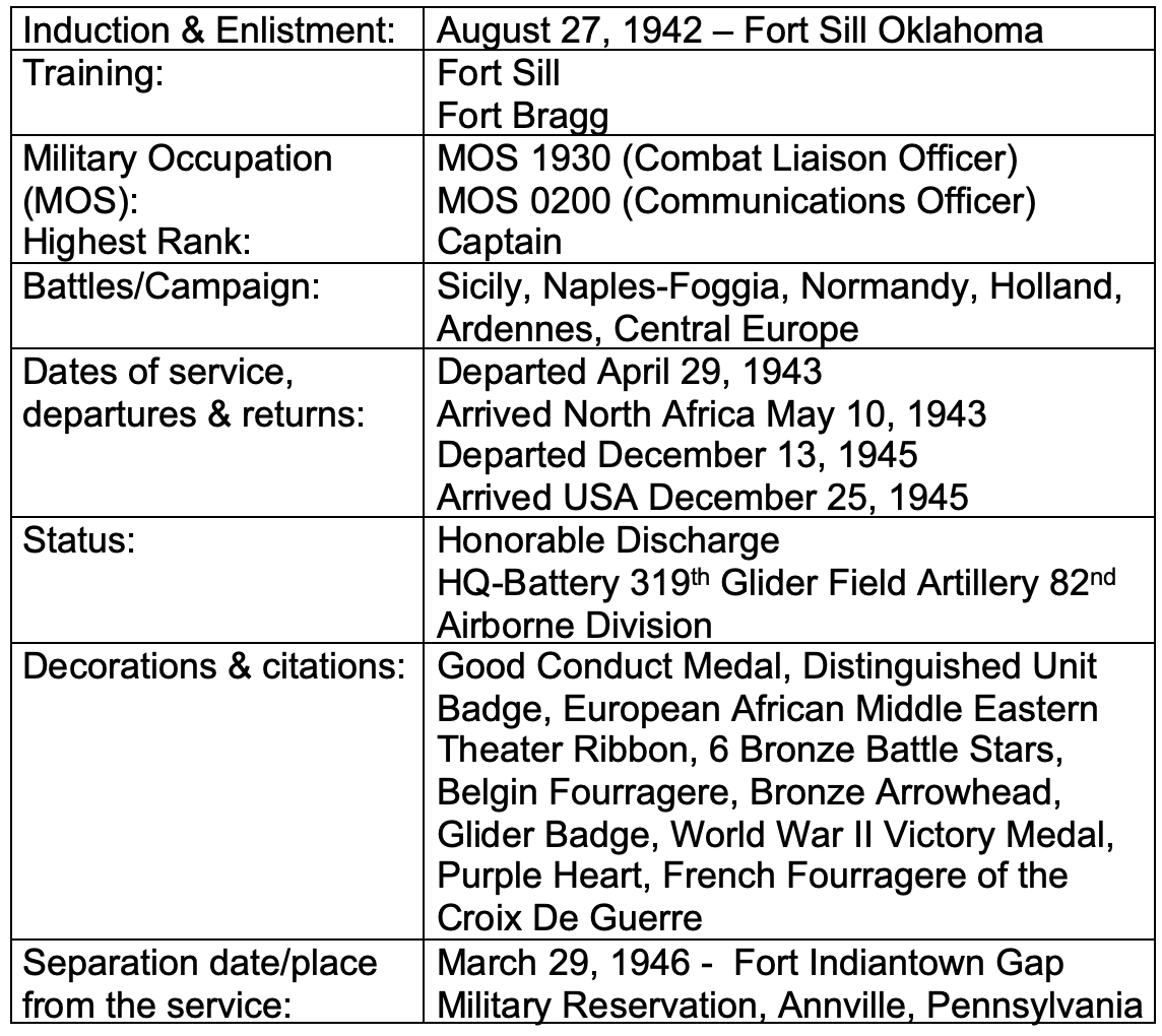 See Unit Journal Italy for Capt. James Lewis